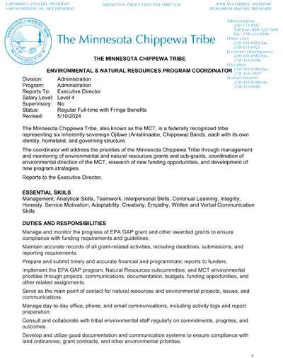 Environmental & Natural Resources Program Coordinator (Full Time)
